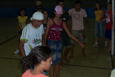 The outreach plan for teens was pretty simple. We partnered with a local church in the community and invited their teens and all the teens from the community to participate in a week of activities. Each morning and afternoon we met in a nearby building and spent time with the 25 teens who came out. We did all types of activities. Here I was teaching the girls how to do a little craft.....